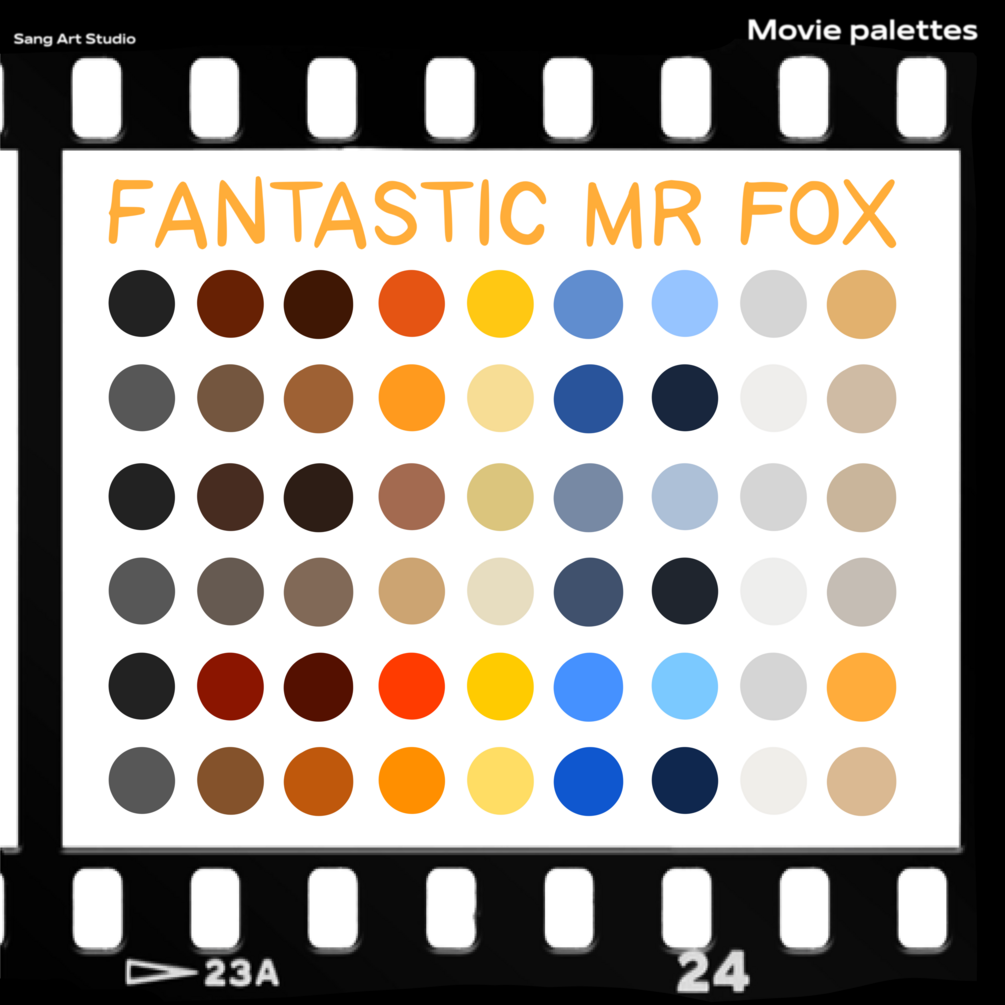 You'll get swatches for Procreate with the color tones and shading and highlighting tones from the film Fantastic Mr Fox