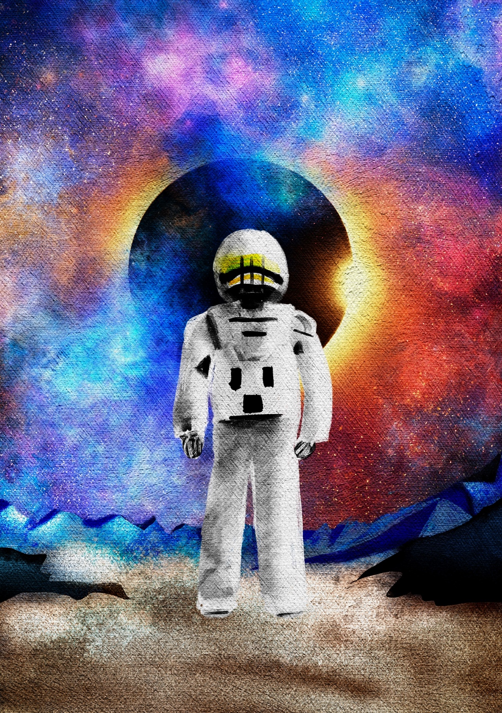 This poster captures the solitude perspective of a magnificent view of an eclipse in the galaxy. This is a Digital File of this Art Poster and comes with PNGs with 3 different versions of this illustrations.