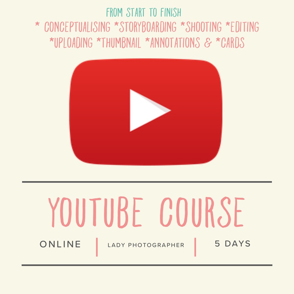 This 5 days course will help you understand and learn how to start your YouTube career specific Lessons on Understanding what your brand is, Ideating, Storyboarding, Shooting, Editing, Exporting, Uploading and bringing more eye balls to your videos.